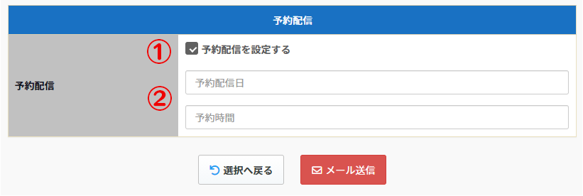 ①「予約配信を設定する」のチェックボックスにチェックをして下さい。