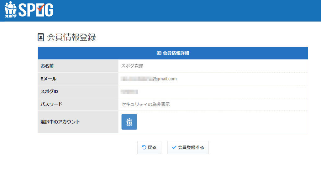 会員登録が完了しますと、スポグにログイン頂けます。