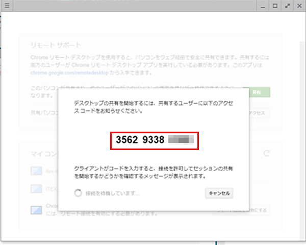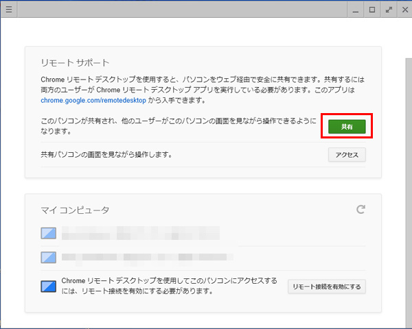 Chromeリモートデスクトップ(ウェブアプリ)の説明については下記を御覧ください。